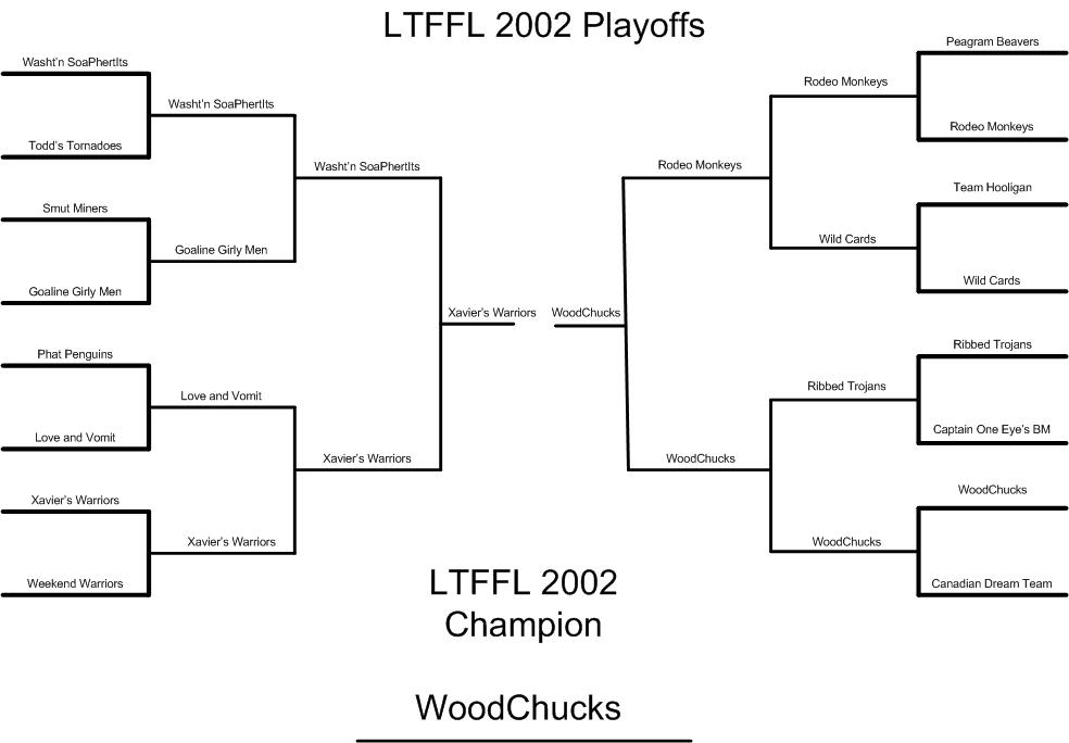 Overall Playoff Bracket can be found here -- > http://www.gr8mutato.net/ltffl/LTFFL2002/LTFFL2002playoffs.jpg